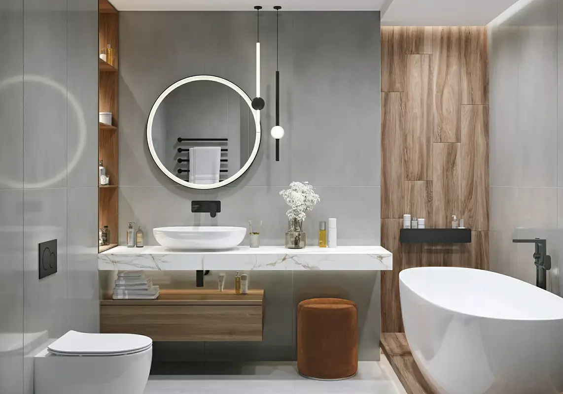 - Душевые кабины и ванные комнаты: Гладкая поверхность плитки легко моется и не требует особого ухода, что особенно важно в помещениях с повышенной влажностью.